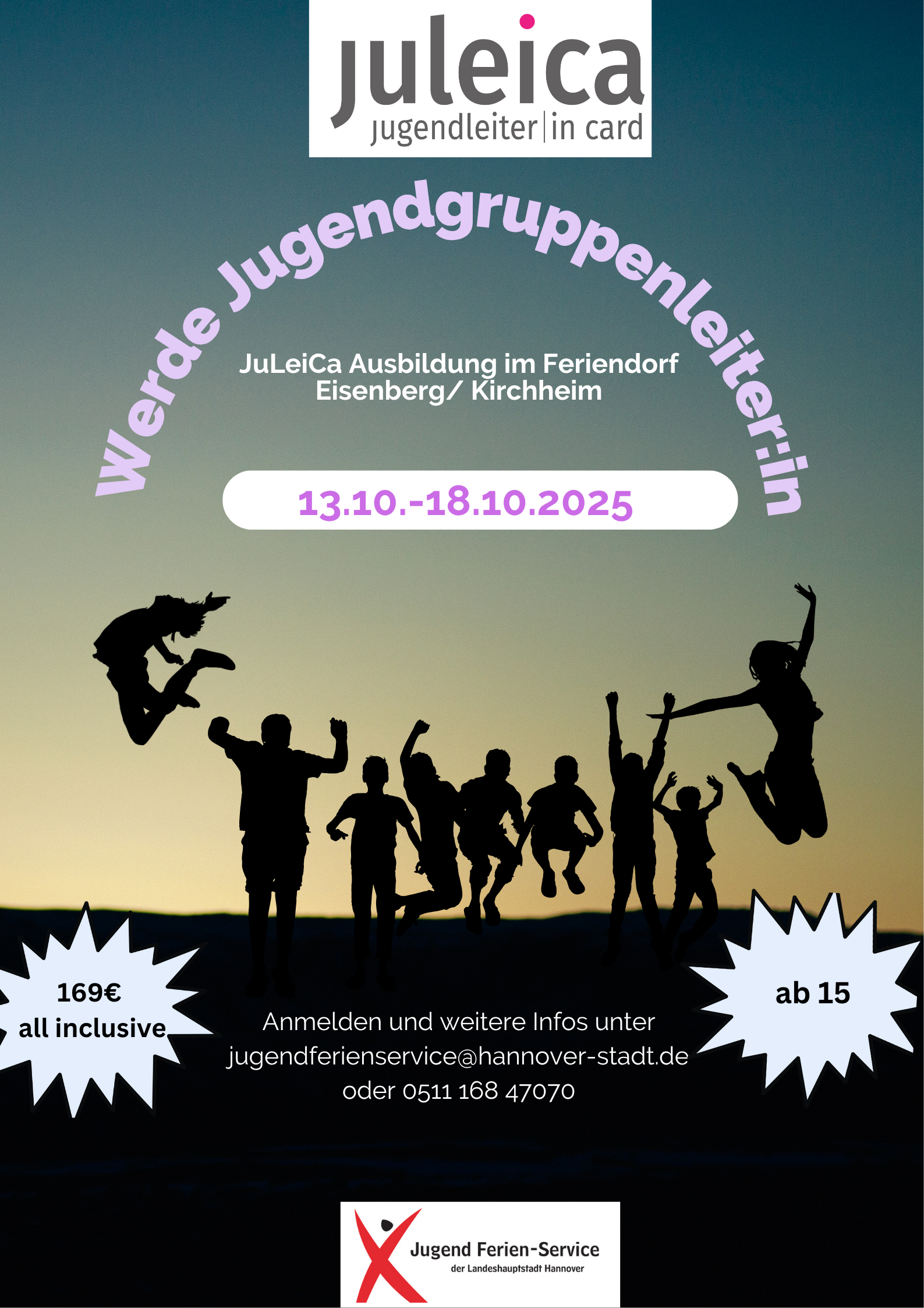 Dir wird die Teilnahmegebühr zurück gezahlt, wenn du innerhalb von 12 Monaten nach der Ausbildung eine Freizeit des Jugend Ferien-Service Hannover teamst.